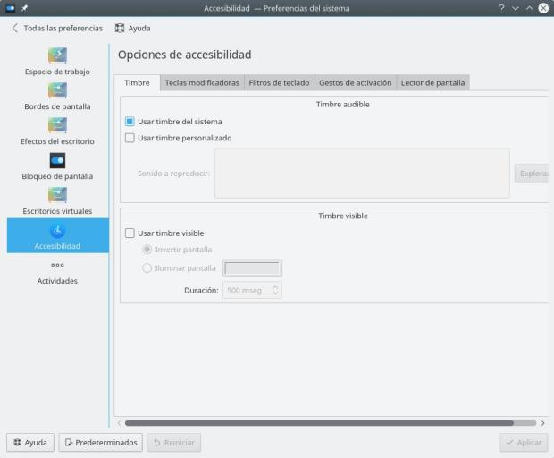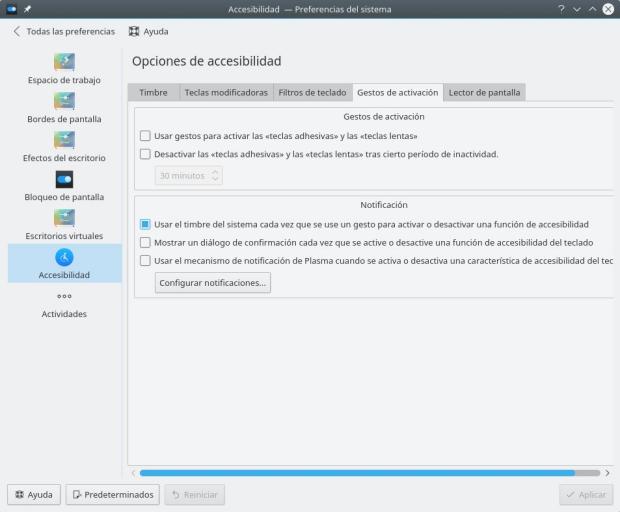 También podemos activar avisos sonoros para cualquier cambio e incluso activar un lector de pantalla.