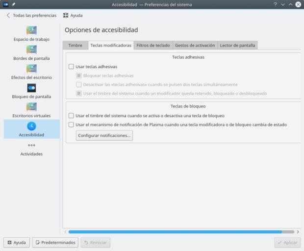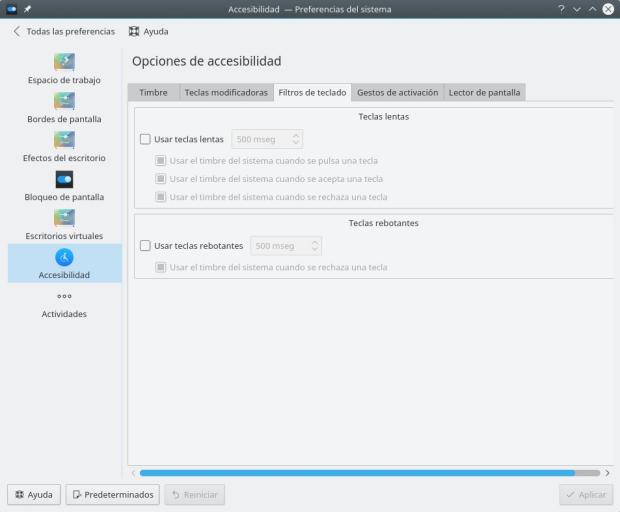 A modo de ejemplo podemos ajustar el teclado para que reaccione más lentamente o que se queden activadas algunas teclas especiales como las mayúsculas.