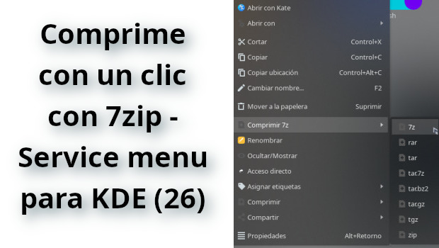 Hoy os presento el Service menu para KDE número 26 de esta serie y que puede ser más que útil si estamos continuamente realizando compresión de archivos ya que este Service Menu Comprime con un clic con 7zip, la forma más efiaz de realizar esta operación.