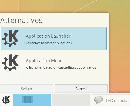 - Los plasmoides muestran ahora otros plasmoides alternativos que realizan la misma función. Por ejemplo, si tenemos instalados un par de plasmoides de relojes, nos aparecerá en el que tengamos instalado la opción de cambiarlo por el otro.