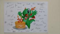 Además, este año se añade un incentivo más, ya que a las 9 personas que realicen la donación más elevada se les regalará 9 dibujos únicos de Konqi celebrando los 20 años de KDE, tamaño A4, firmados por 46 colaboradores destacados actuales o antiguos que dejaron su firma en ellos en la reciente QtCon.